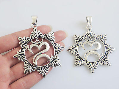 2 x Antique Silver Large Flower Open OM OHM AUM Symbol Charms Pendant 69x63mm