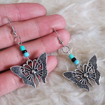 Title (ebay affiliate link): Vintage Womens Antique-Silver-Metal Butterfly Beads Dangle Drop Hook Earrings