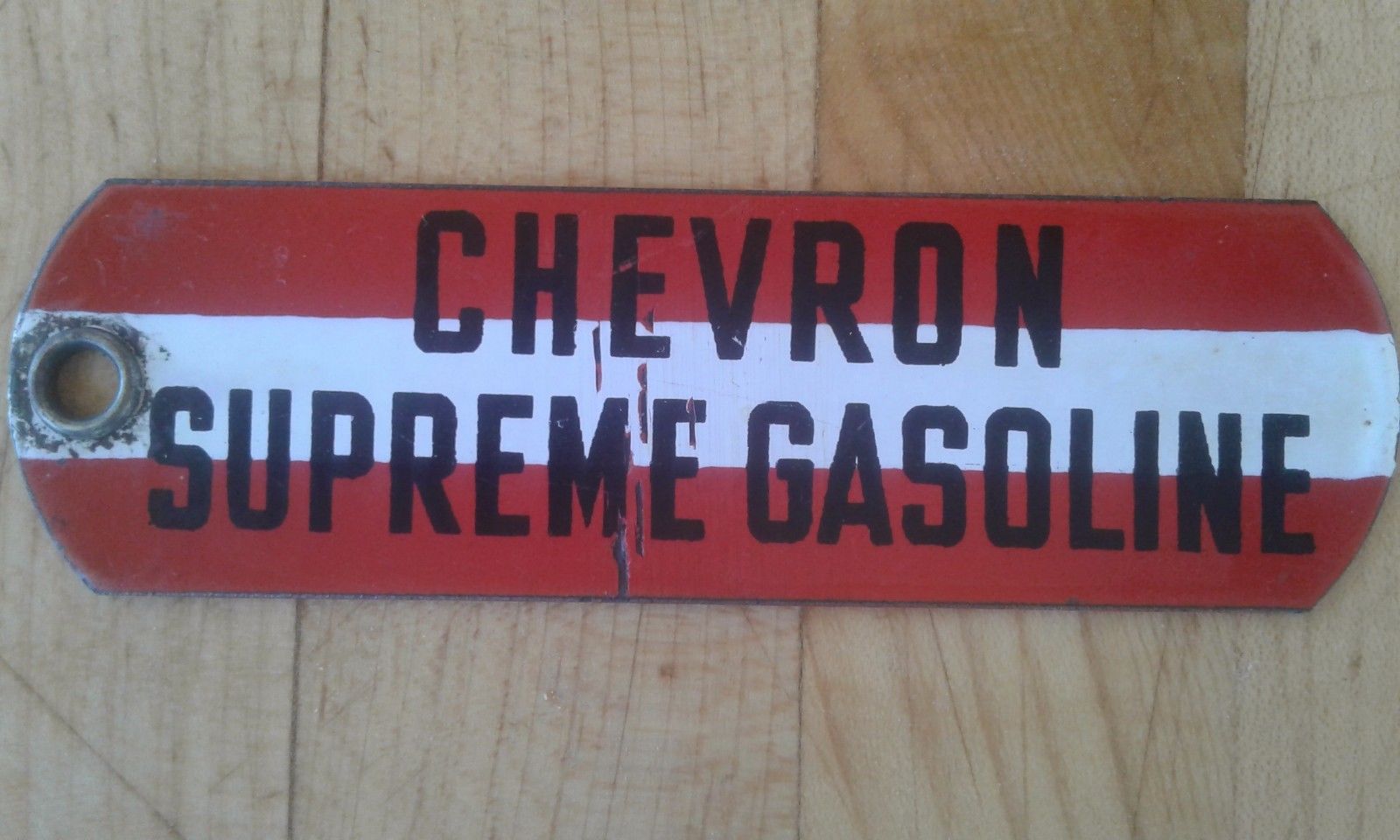 Title (ebay affiliate link): Vintage Porcelain "Chevron Supreme Gasoline" Pump Tag. Red/White/Black.