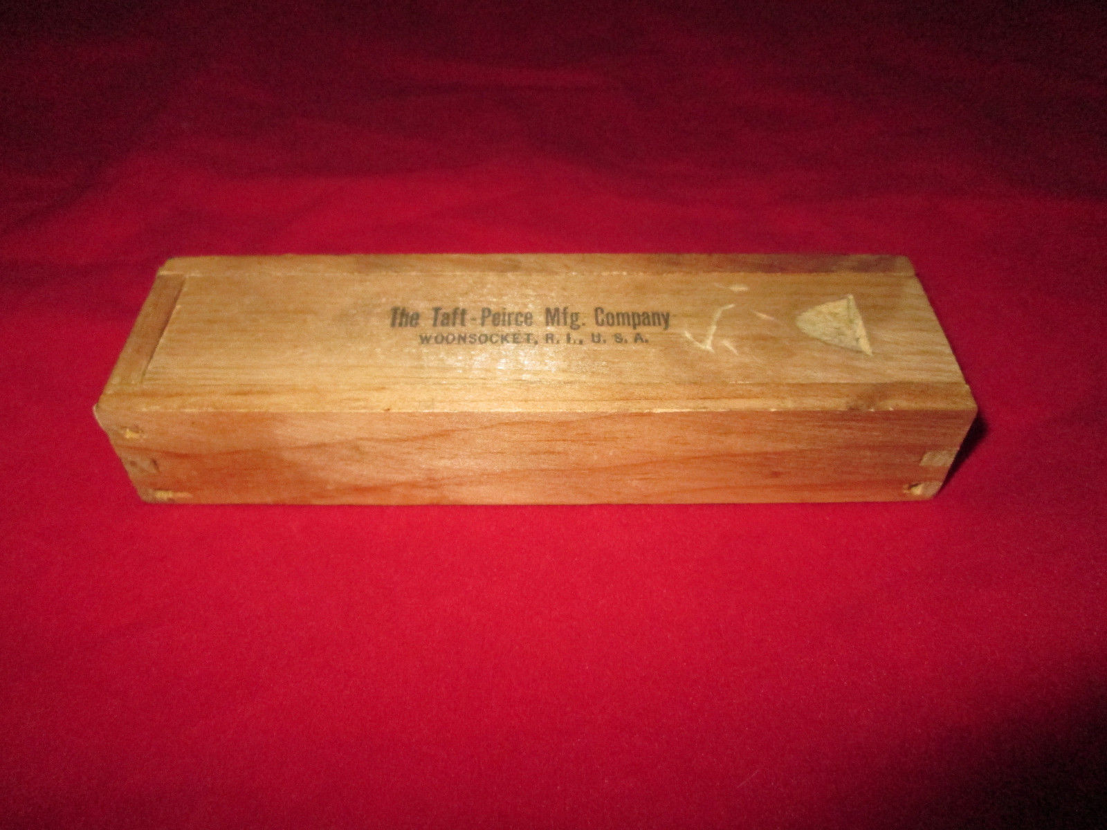Title (ebay affiliate link): Wooden Taft-Peirce Mfg. Co. Slide-Top Box Woonsocket R.I. 5 5/8" X 1 5/8" X 1"