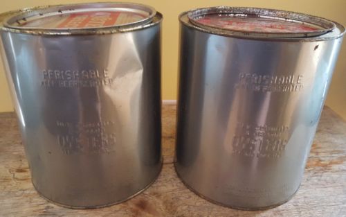 (2) Vintage one gallon oyster tin cans Maryland