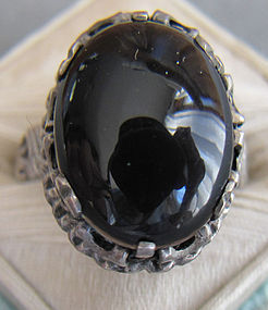 Antique 800 Silver Czech Black Onyx Ring Sterling