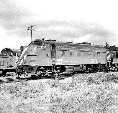 Title (ebay affiliate link): Original 2 1/4" x 2 1/4" B&W Negative~Burlington Northern #602 F7
