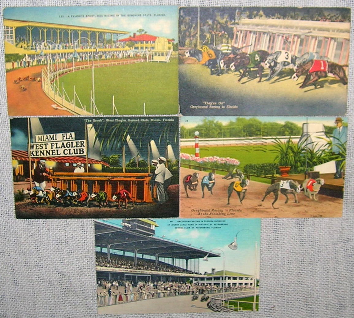Lot of 5 Florida Dog Racing Linen Postcards