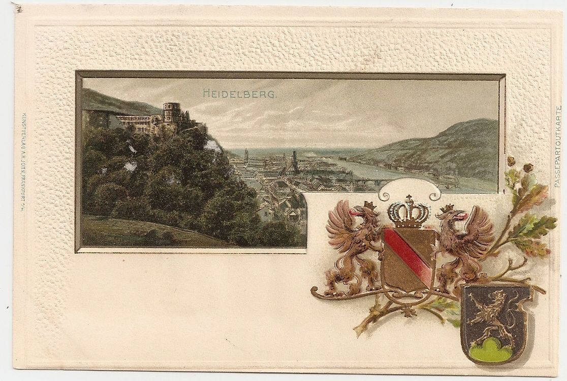 Beautiful embossed coat of arms art Heidelberg Germany Postcard
