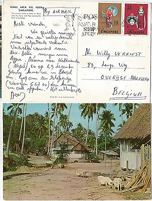 SINGAPORE 1973 RPPC Rural Area Pig Farm, Singapore, sent to Belgium