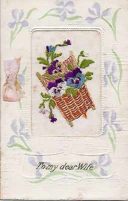 TO MY DEAR WIFE: WW1 EMBROIDERED SILK GREETINGS CARD