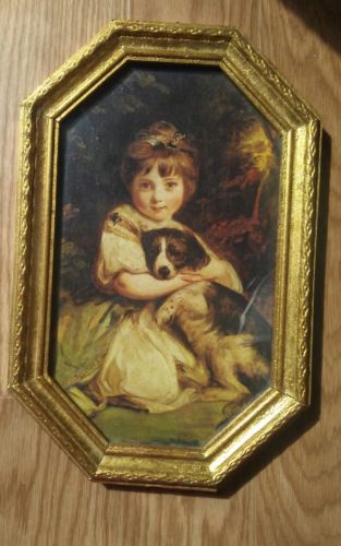 Title (ebay affiliate link): Vintage Gold Gilt Wood Framed Octagonal Picture Made in Italy Dog And Girl