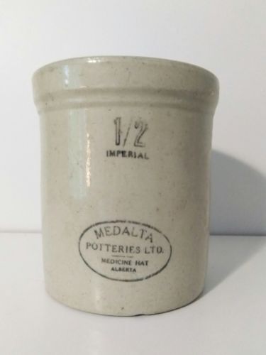 Title (ebay affiliate link): 1/2 Imperial Medalta Potteries Ltd. Alberta Canada Crock Stoneware Antique