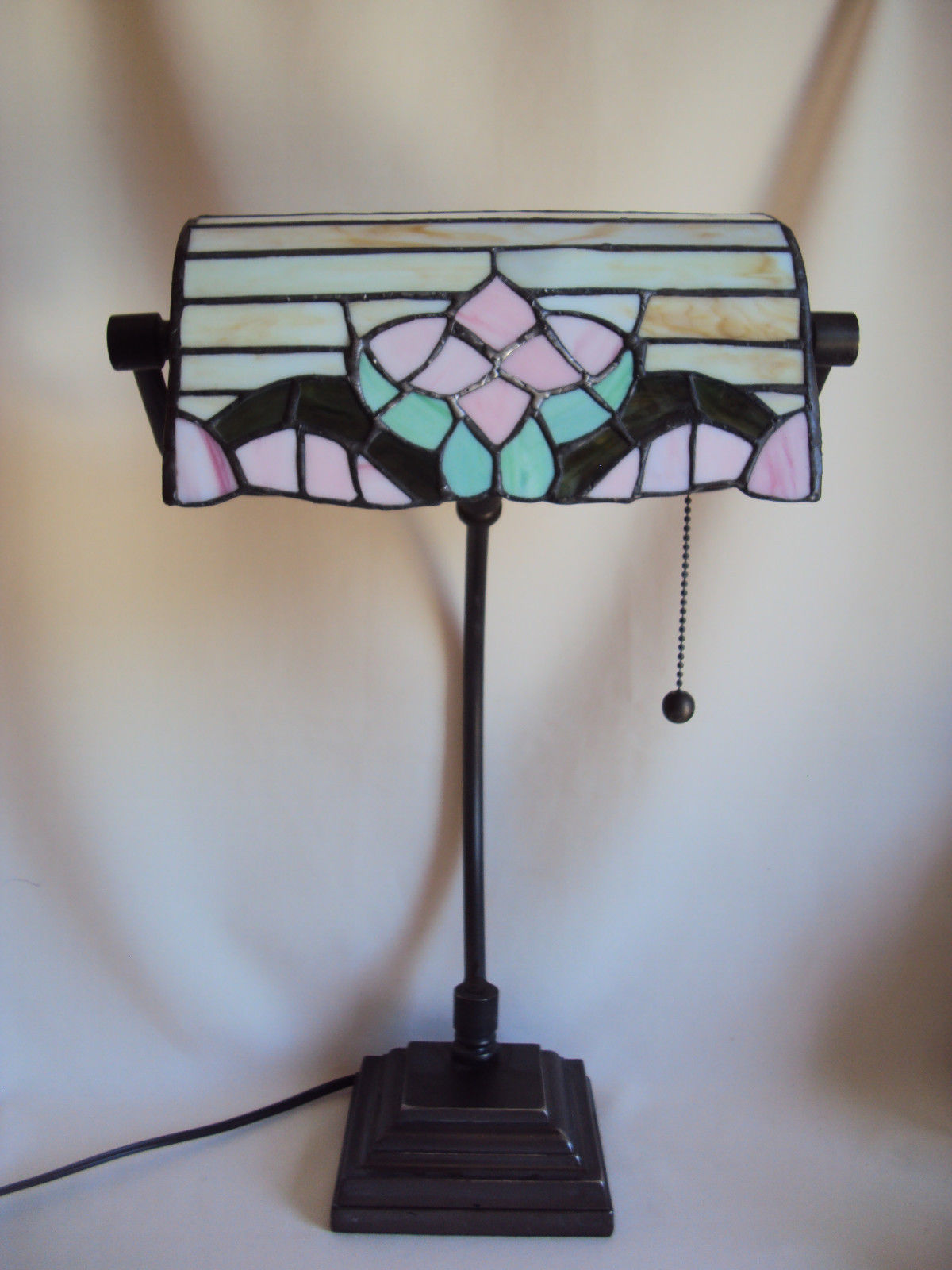 VINTAGE SLAG GLASS METAL / BRASS TABLE DESK LAMP WORKING