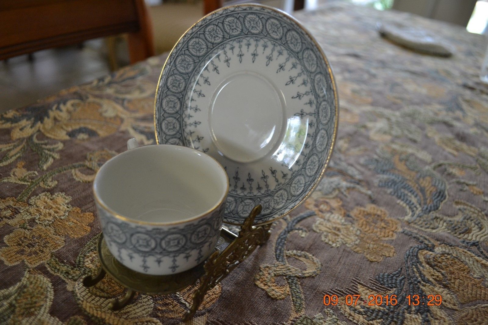 Title (ebay affiliate link): Vintage John Maddock & Sons Royal Vitreous Blue England Cup & Saucer w/Holder