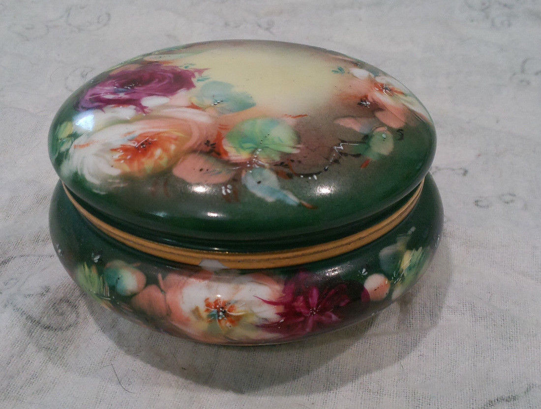 1890''s limoge france porcelin powder jar hand painted