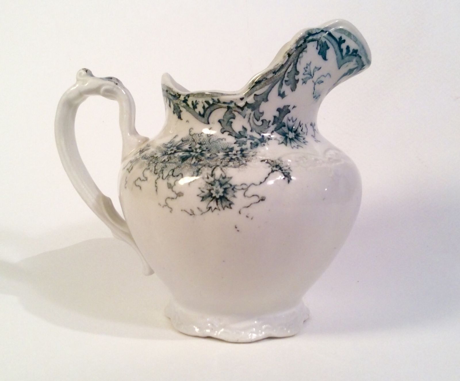 Colonial Pottery Stoke England DIANTHUS Blue Green Cream Pitcher~ca 1885-1890
