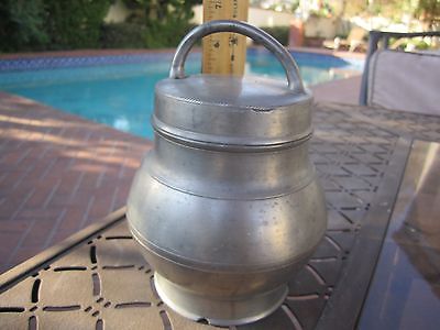 ANTIQUE 19TH CENTURY PEWTER HALLMARKED LIDDED SCREW TOP FOOD LIQUID CONTAINER