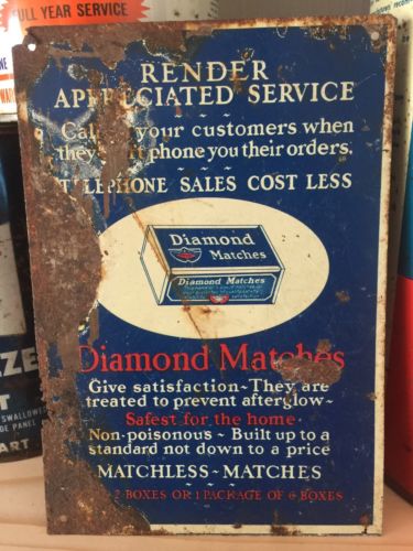 Antique DIAMOND BRAND MATCHES Sign . Metal Sign. Primitive. Country Store Sign.