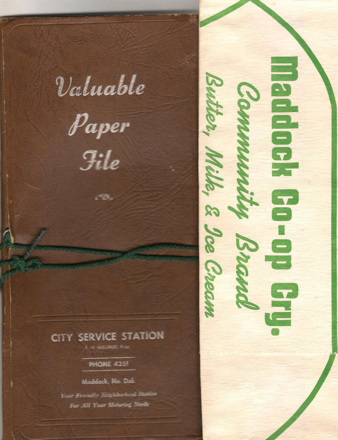 Maddock Co-op Cry. Hat & Valuable Paper File City Service Station Maddock, ND