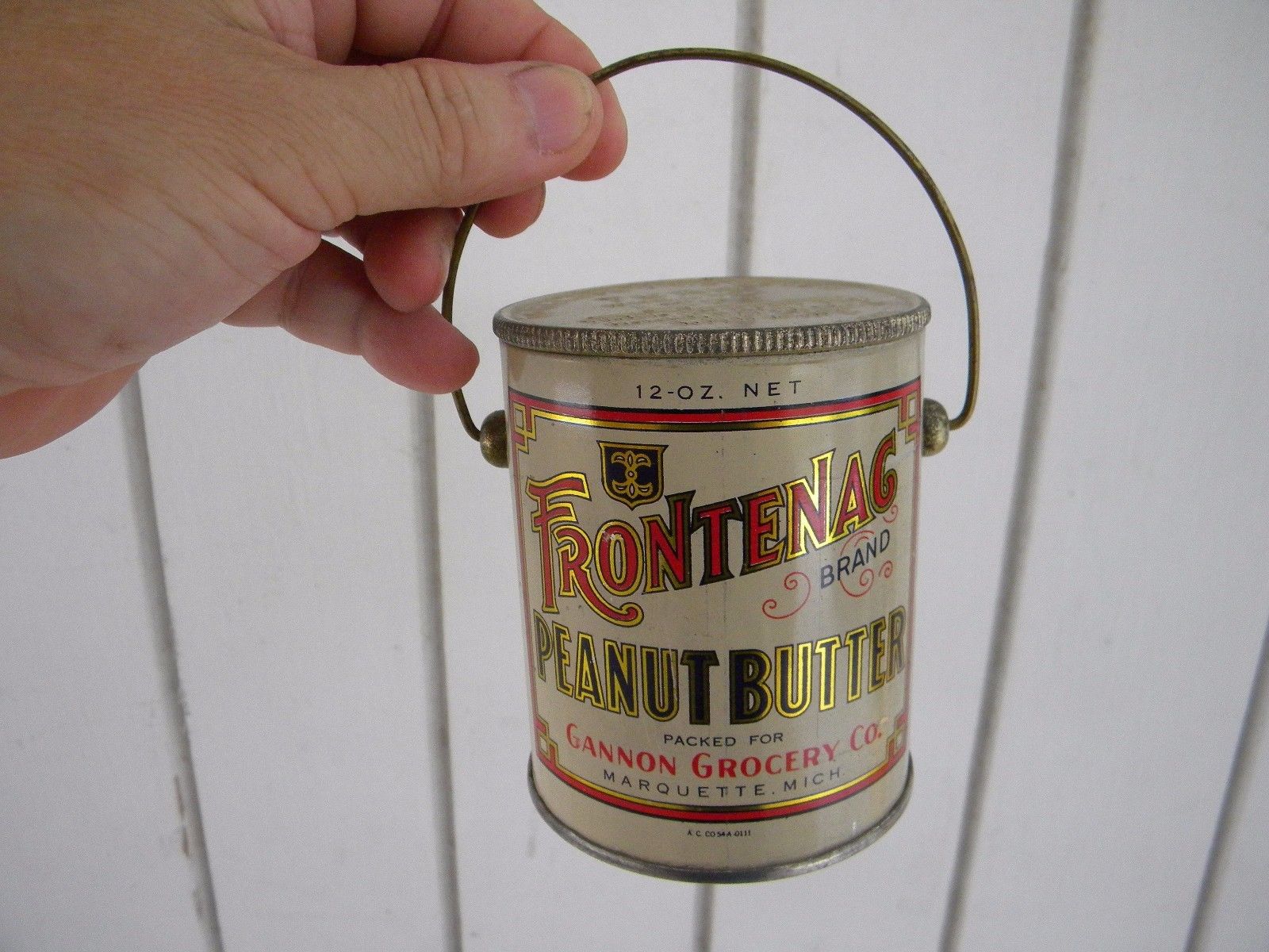 Title (ebay affiliate link): MARQUETTE MICHIGAN Vintage FRONTENAG Peanut Butter Tin - Pail Style ANTIQUE TIN