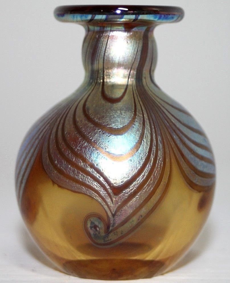 Title (ebay affiliate link): ANTIQUE SIGNED ART GLASS PULLED FEATHER IRIDESCENT FAVRILE COLOR PERFUME BOTTLE.