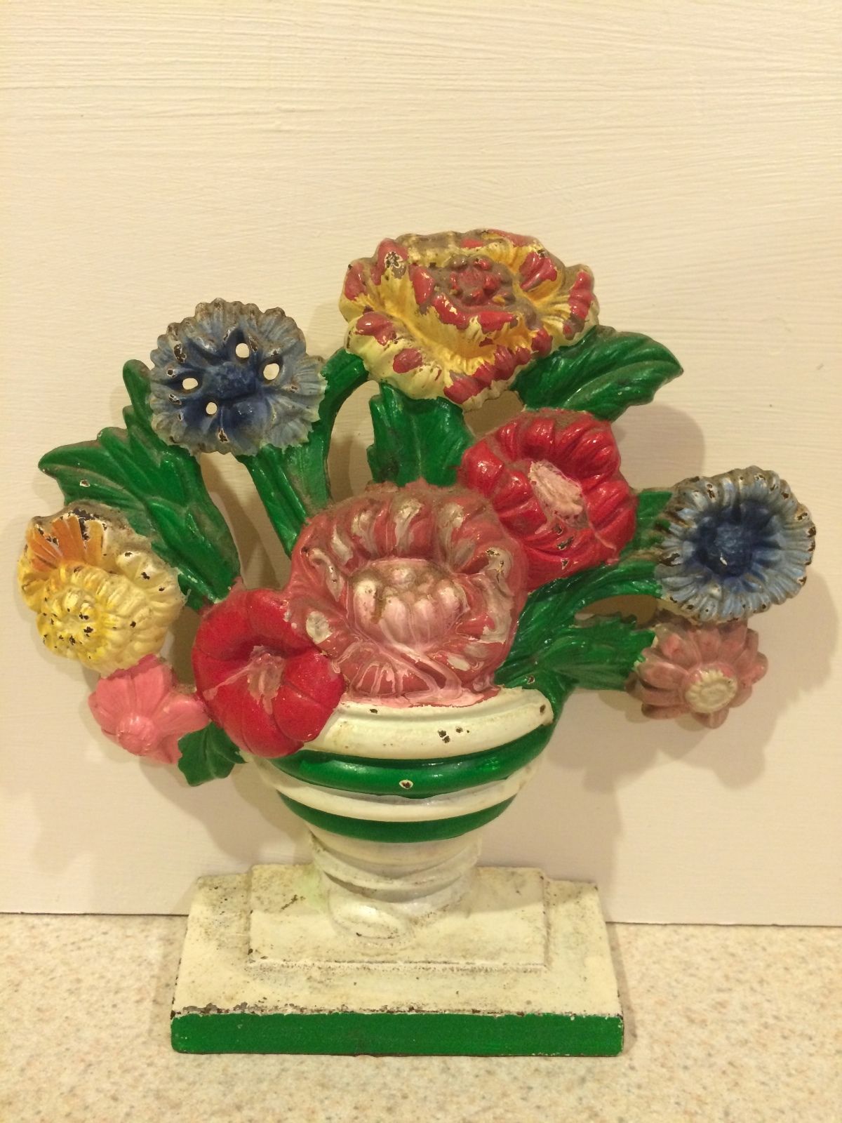 Vintage HUBLEY cast iron doorstop Flower Pot MARIGOLDS # 315