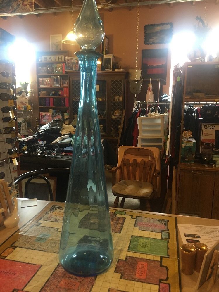 Title (ebay affiliate link): Blue Blown Glass Decanter With Stopper, Genie bottle Made In Italy with Sticker