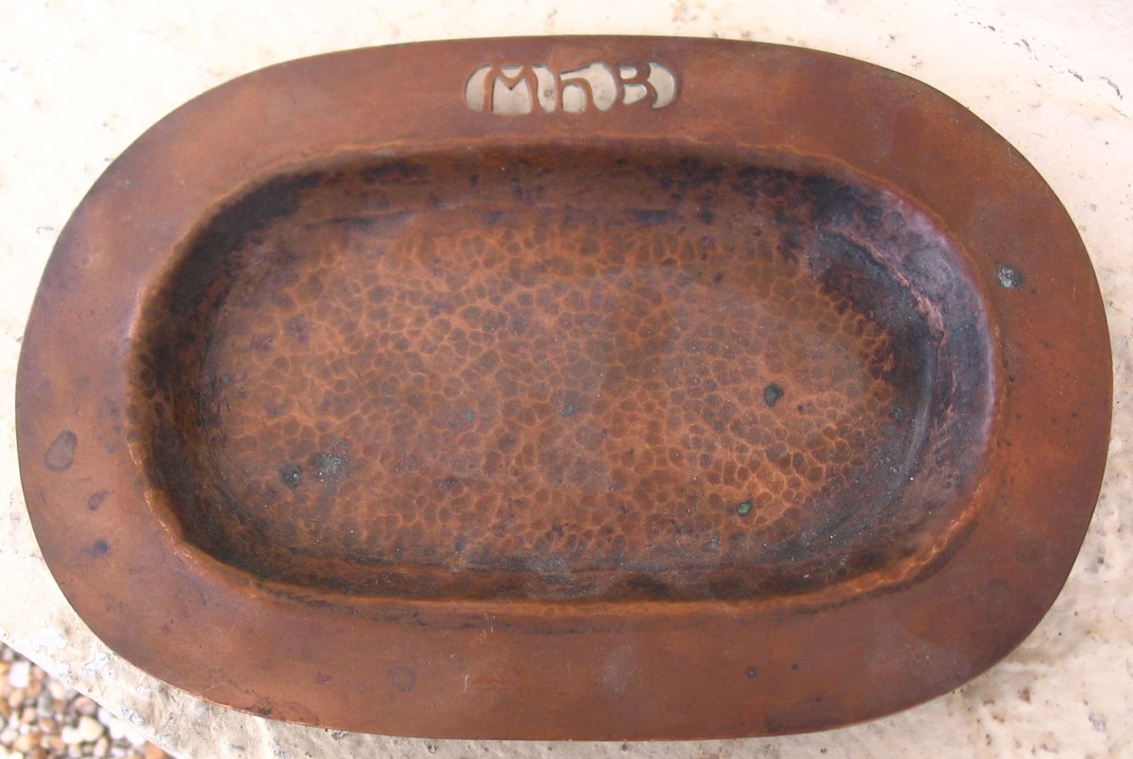 Title (ebay affiliate link): Antique Copper Hand Hammered Oval Arts & Crafts Mission Tray Monogramed