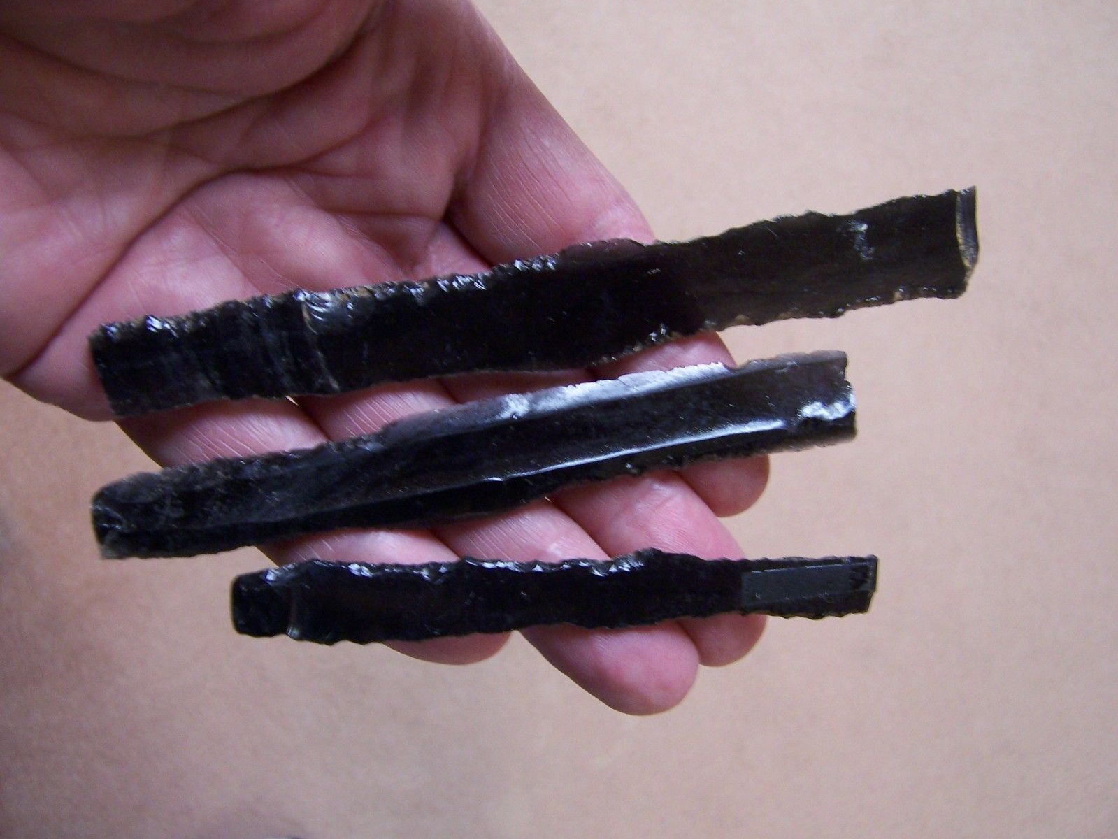 Title (ebay affiliate link): THREE LARGE AUTHENTIC PRE-COLUMBIAN OBSIDIAN LAMELLAR KNIVES
