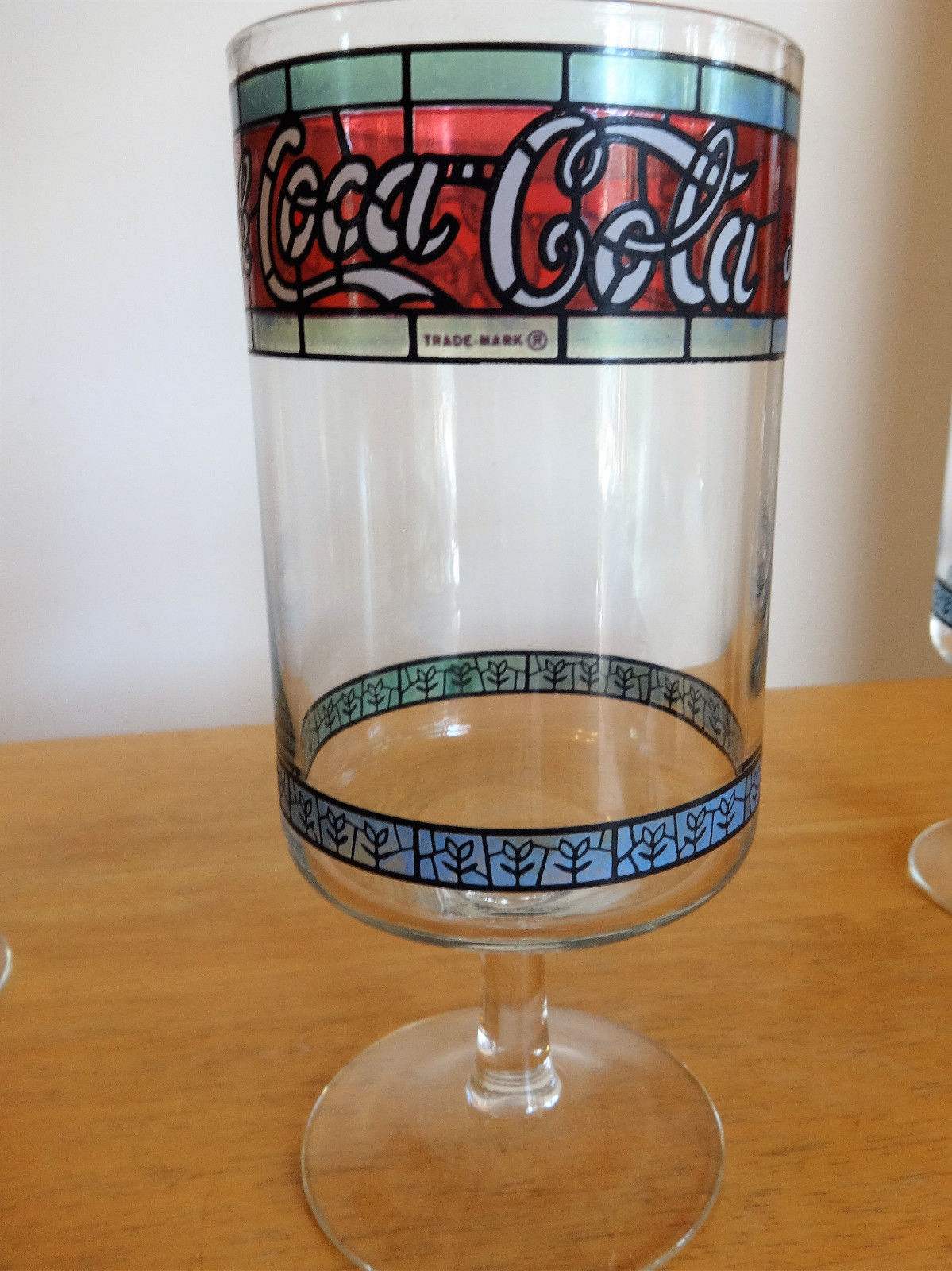 Title (ebay affiliate link): Lot of 3 Vintage Drink Coca-Cola Red Green Stained-Glass Stemmed Glassware