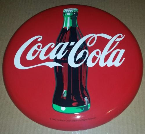 Title (ebay affiliate link): Vintage Coca Cola Button Metal Tin Advertising Sign 12" Iches 1990 NEW