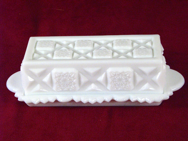 Westmoreland Milk Glass Old Quilt 1/4 Pound Butter Dish