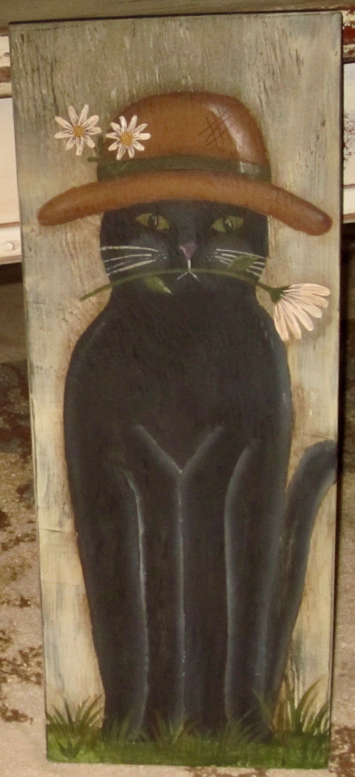 Title (ebay affiliate link): *~*PRIMITIVE*~* HP FOLK ART PRIM GARDEN CAT *~* DAISIES *~* BOARD