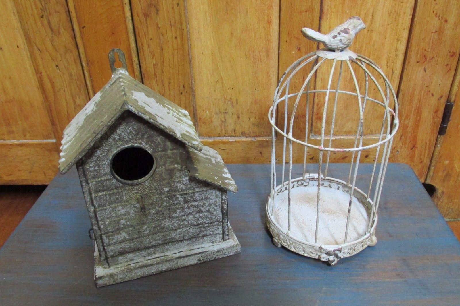 Metal Bird House, Bird Cage, Primitive, Country, Farm House, Garden Decor
