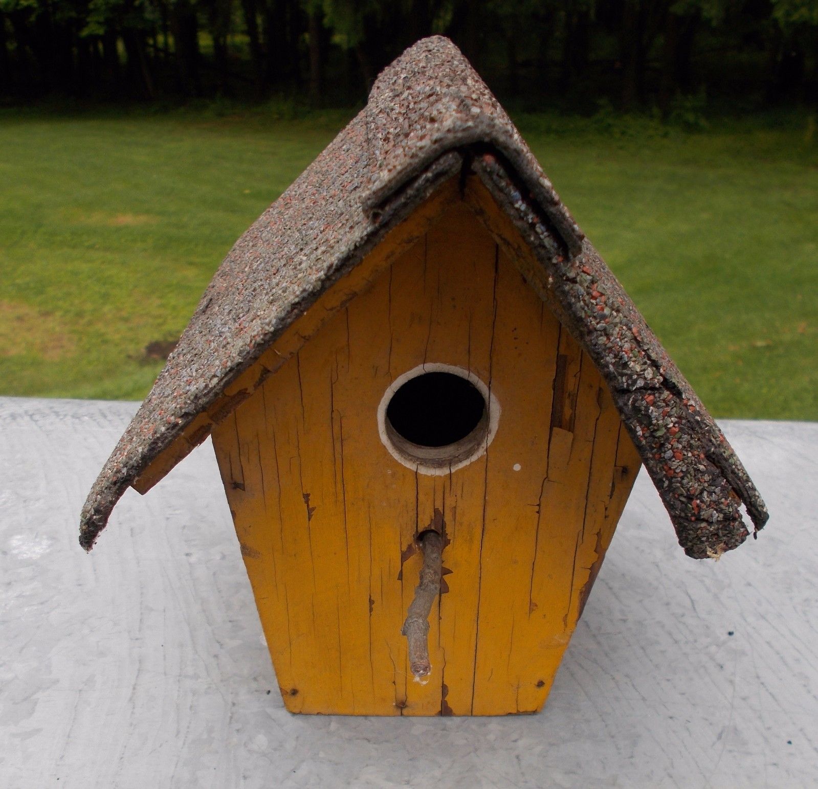 Title (ebay affiliate link): Primitive Sweet Old Farm House Garden Small Bird House Old Mustard Paint