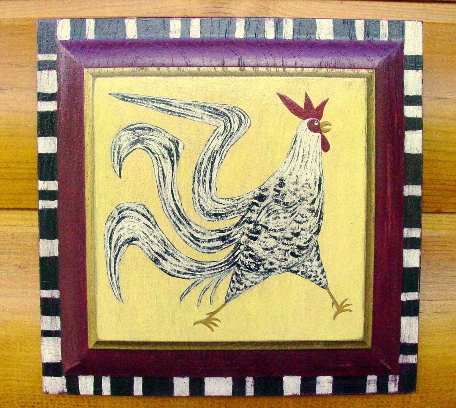 Title (ebay affiliate link): Modern FOLK ART Rooster PAINTING~Primitive Chicken~Reclaimed Wood~John Blake