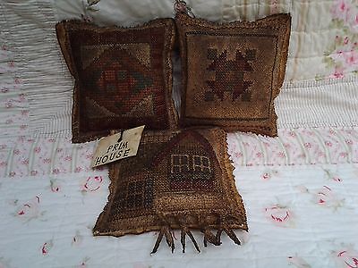 Primitive Folk Art Cross Stitch Basket / Bowl Fillers~Set of 3~
