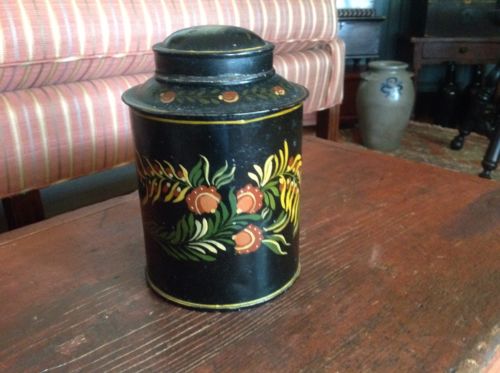 Title (ebay affiliate link): ANTIQUE FOLK ART AMERICAN TIN TOLE PAINTED TEA JAR CANISTER