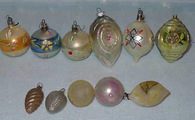 Lot of Antique Pre-war Glass Christmas Tree Ornaments, Hand Painted W/ Wear