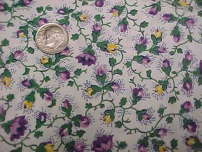 Vintage Antique Cotton Quilt Doll Fabric Purple Yellow Rosebuds Foliage 1920s