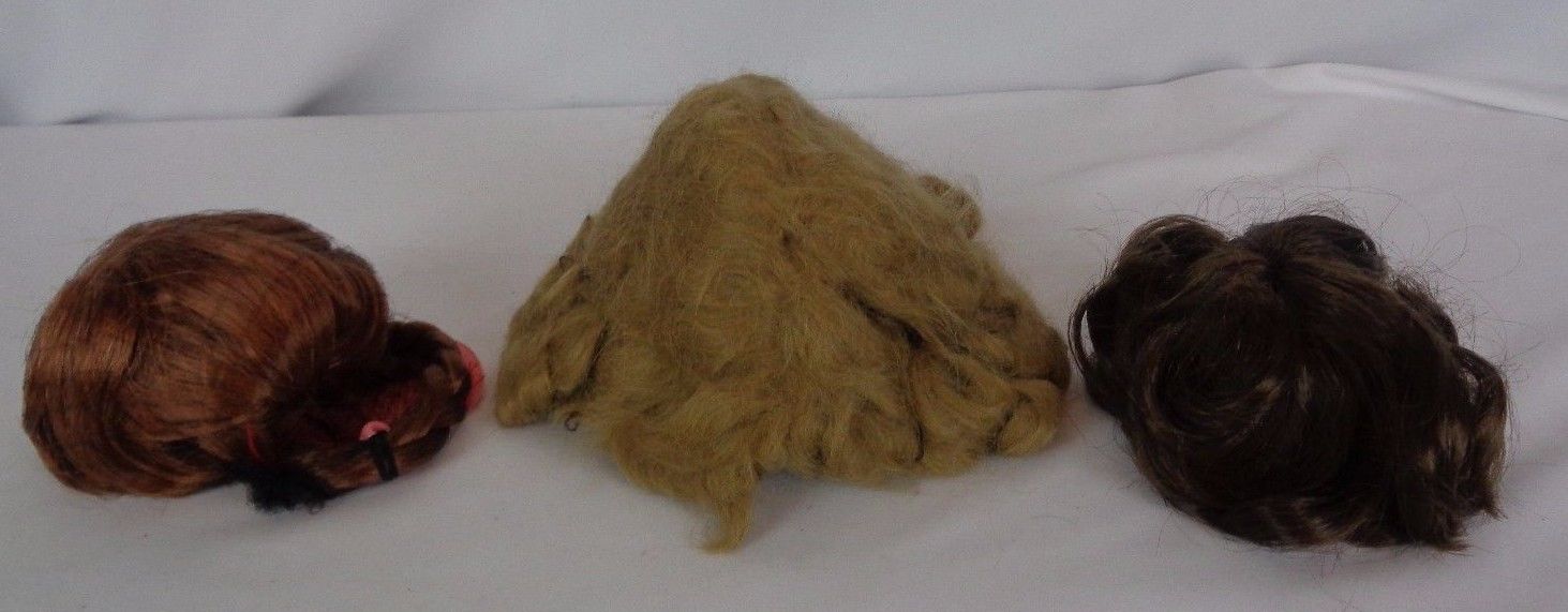 Vintage Doll Wigs 3 piece lot Blond Auburn Dk Brown 2 New Old Stock Antique Doll