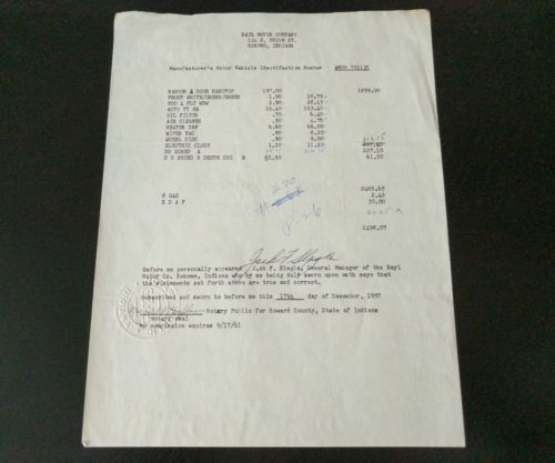 Title (ebay affiliate link): 1957 Paper Regarding an Edsel Ranger From Rayl Motor Company ~ Notorized