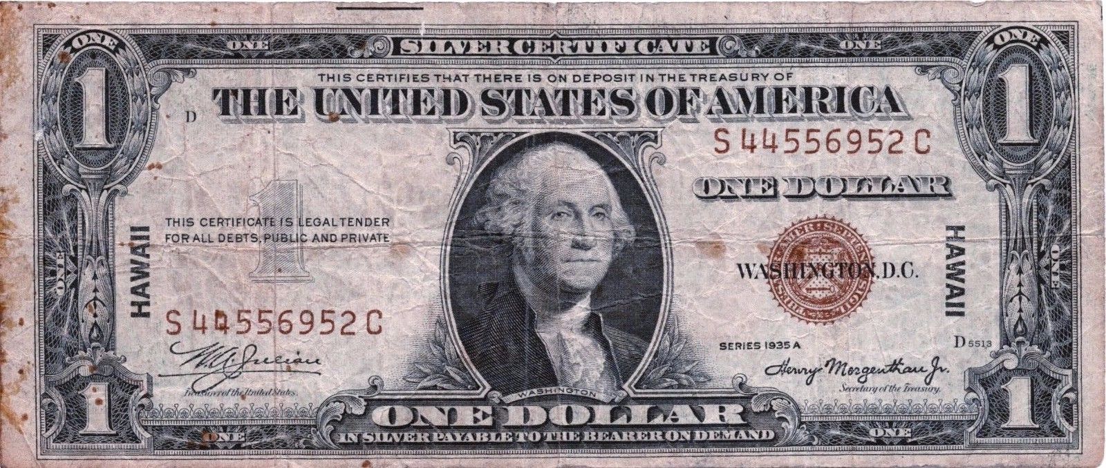 Title (ebay affiliate link): 1935 $1 Silver Certificate HAWAII Brown Seal