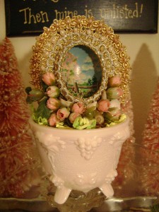 Vtg Jeannette Pink Milk Glass Candy Dish w/ Easter Egg