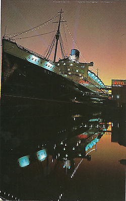 VINTAGE POSTCARD LONG BEACH CALIFORNIA QUEEN MARY AT TWILIGHT SUNSET