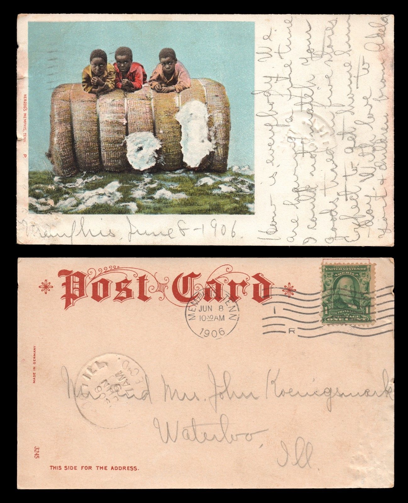 Title (ebay affiliate link): 1906 BLACK AMERICANA - Children Resting on Cotton Bale - Herzog''s Postcard #3245
