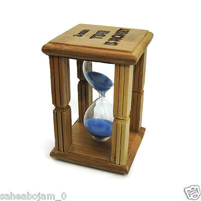 Title (ebay affiliate link): Sand Timer Hourglass wood and Glass Minute art New 3 Minutes Beautiful blue nice