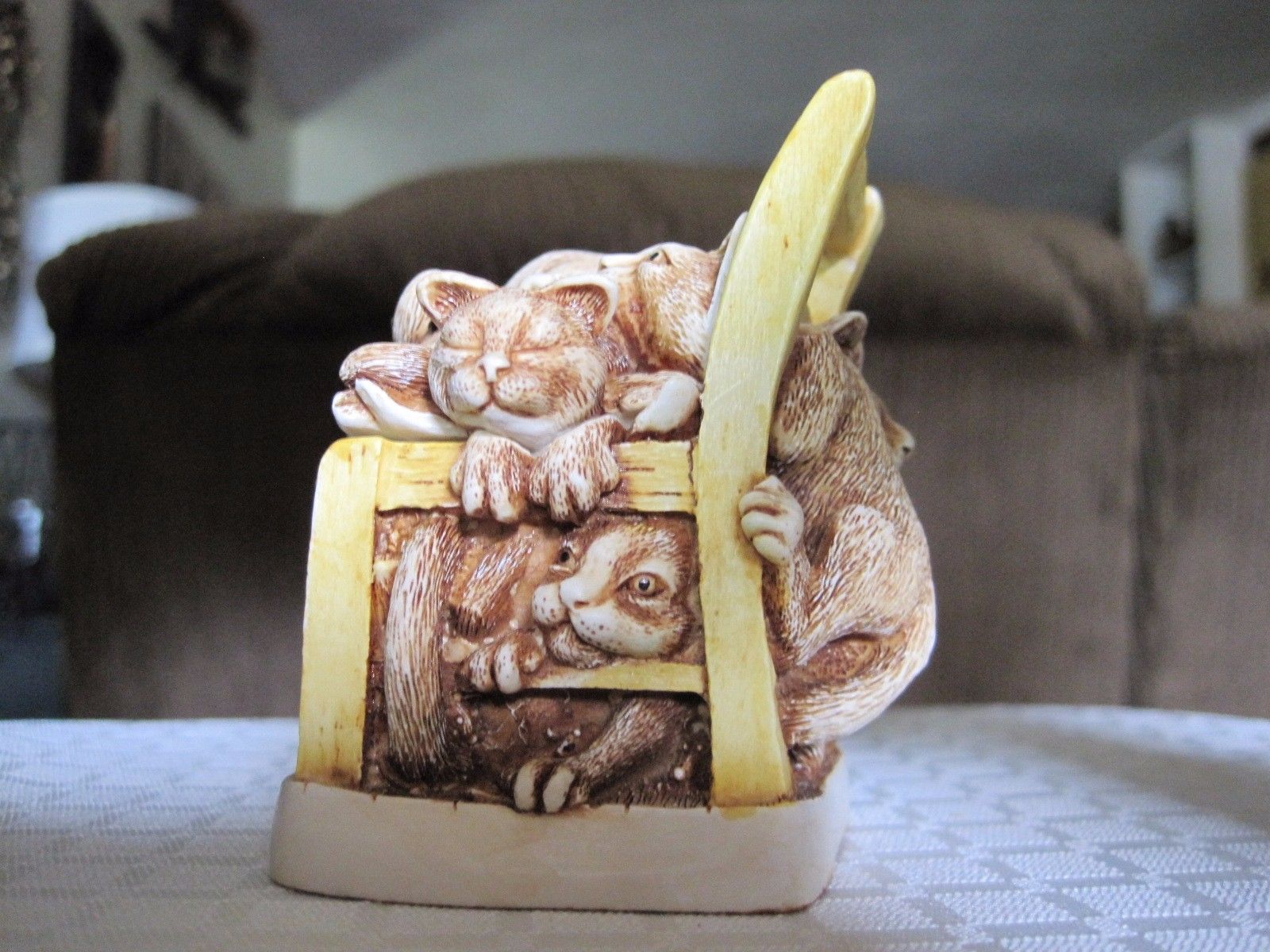 Title (ebay affiliate link): HARMONY KINGDOM "RUMBLE SEAT" CATS ON CHAIR FIGURINE BOX