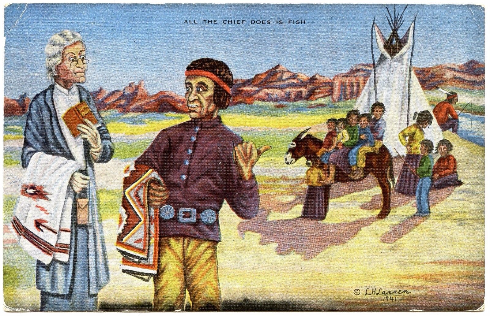 Title (ebay affiliate link): B6280 All the Chief Does Is Fish Artist Signed Dude Larsen Linen Postcard No. 32