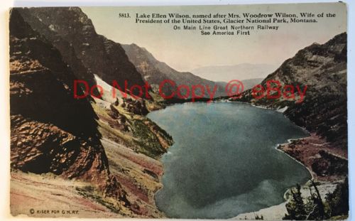 Title (ebay affiliate link): LAKE ELLEN WILSON Mainline Great Northern Railway Glacier Park Montana Postcard
