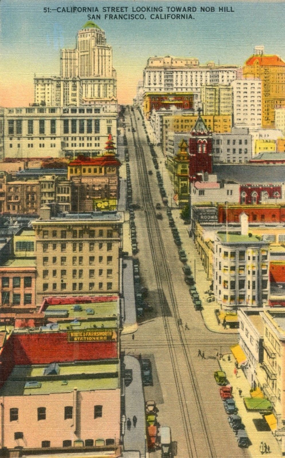 Title (ebay affiliate link): San Francisco CA, 40''s linen postcard, California Street looking toward Nob Hill