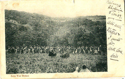 Title (ebay affiliate link): 1907 postcard Zulu War Dance in Rhodesia Zimbabwe Africa