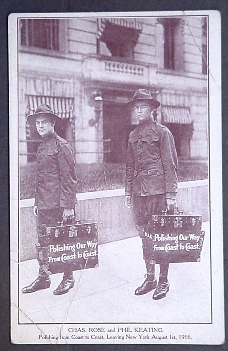 Title (ebay affiliate link): New York City NY Cross Country Hikers C. Rose & P. Keating Leaving for CA 1916